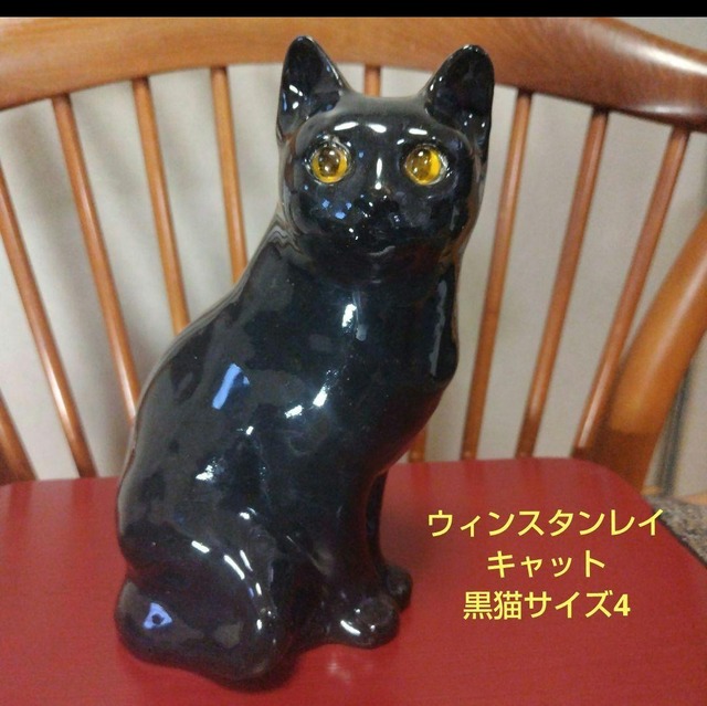 まるで生きているような黒猫のウィンスタンレイ・キャット(ケンジントンキャット)です。 ウィンスタンレイキャットの母国イギリスでは、黒猫は「幸運を呼ぶ猫」として、ラッキーアイテムと見なされています。 その由来には諸説ありますが、一説では、17世紀の国王チャールズ1世が、飼っていた黒猫を大変可愛がっていたことに由来するとか。 ウィンスタンレイ女史(没年2004年)の「Winstanley Cats bring life to gray」=「ウィンスタンレイキャットは粘土に生命を吹き込む」という言葉がありますが、まさに生きている猫がここにいます。 サイズ4の黒猫です。優しい眼差しでこちらを見つめています。 ウィンスタンレイキャットの一番の特徴は、キャセドラルグラスアイズと呼ばれるガラスの目です。 この猫も、見る者の視線をクリアーな瞳で追いかけてきます。 ✴️サイズは、 サイズ「4」、高さ24.5cm、奥行き15cm、幅15cm位です。 ✴️コンディションは、 割れや欠けのない良好なコンディションです。 (ご参考)ウィンスタンレイ キャットの歴史〜ジェニー・ウィンスタンレイが猫を作り始めたのは、のちの夫アレンの工房の助手に応募したのがきっかけでした。1950年代当初はケンジントン工房と呼ばれていましたが、ジェニーの創作した特徴ある猫を1958年から夫婦は作り始め、後にジェニーの旧姓のウィンスタンレイ工房と名乗るようになります。1964年に工房をノーフォークに移転し、米国や仏国、伊国を中心に輸出がはじまります。80年代に入るとモデルが増えすぎてモデルナンバーで管理できなくなってきます。そこでだいたいのサイズごとに分類することにしました。90年代の全盛期には5人のスタッフを雇い第2工場も持っていました。ジェニーはすでに2004年に亡くなっていますが、彼女の息子さんたちが後継者となり、今も作品が作られています。 ✳️ウィンスタンレイ ✳️ウィンスタンレイ キャット ✳️ウインスタンレイキャット ✳️ケンジントン キャット ✳️猫の置物 ✳️せかほし ✳️セカホシ ✳️犬の置物 【TA】 No.2212