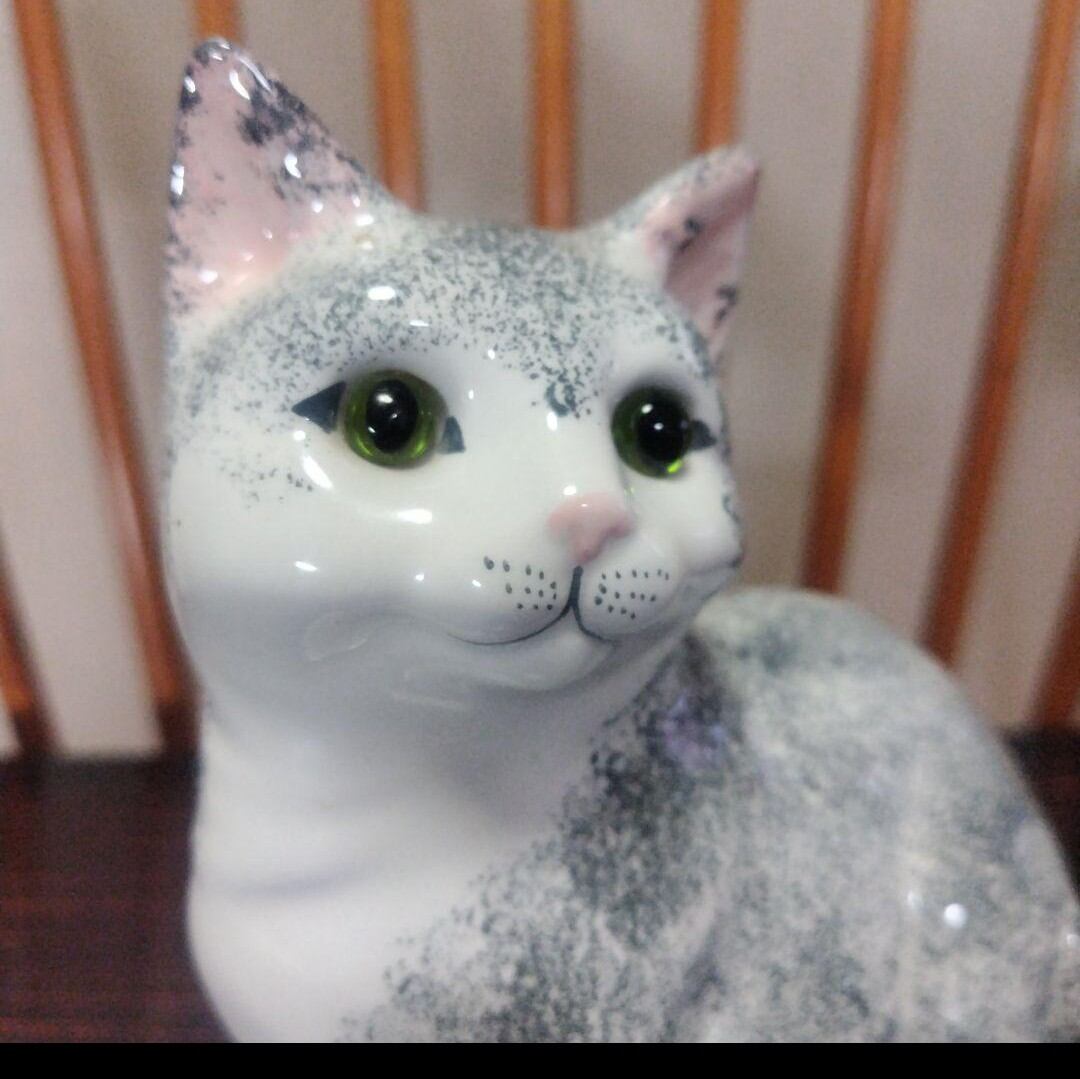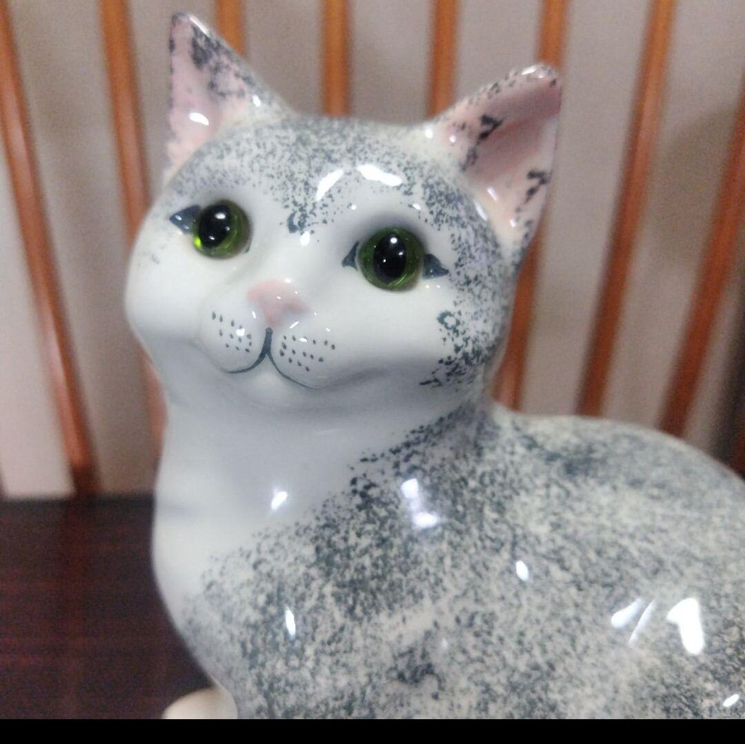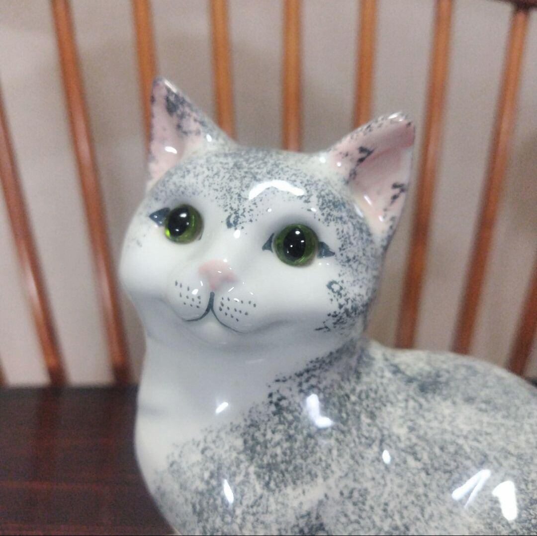 【ON SALE】英国製、陶器製の猫の置物、ラブリ〜な表情!ガラスの目