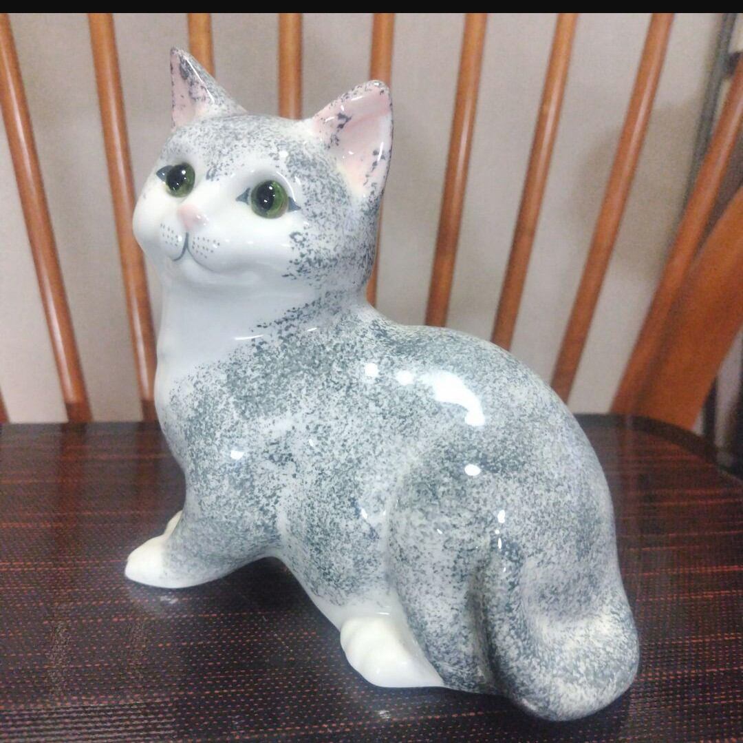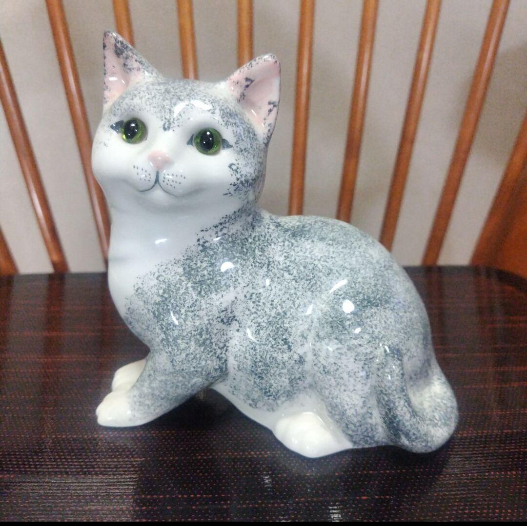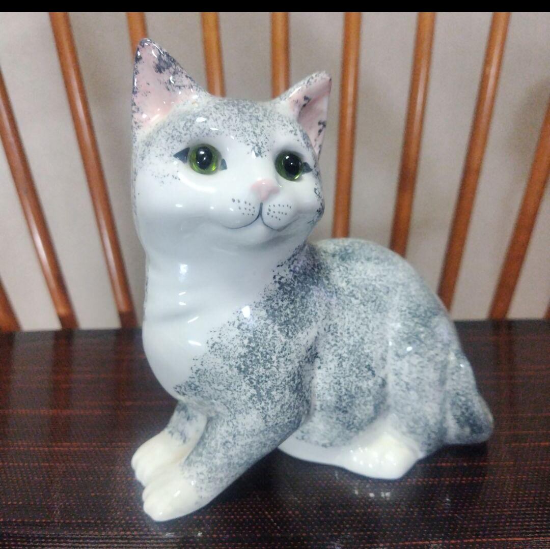 【ON SALE】英国製、陶器製の猫の置物、ラブリ〜な表情!ガラスの目