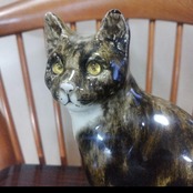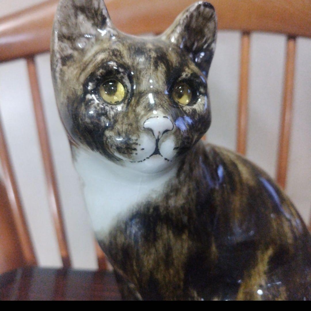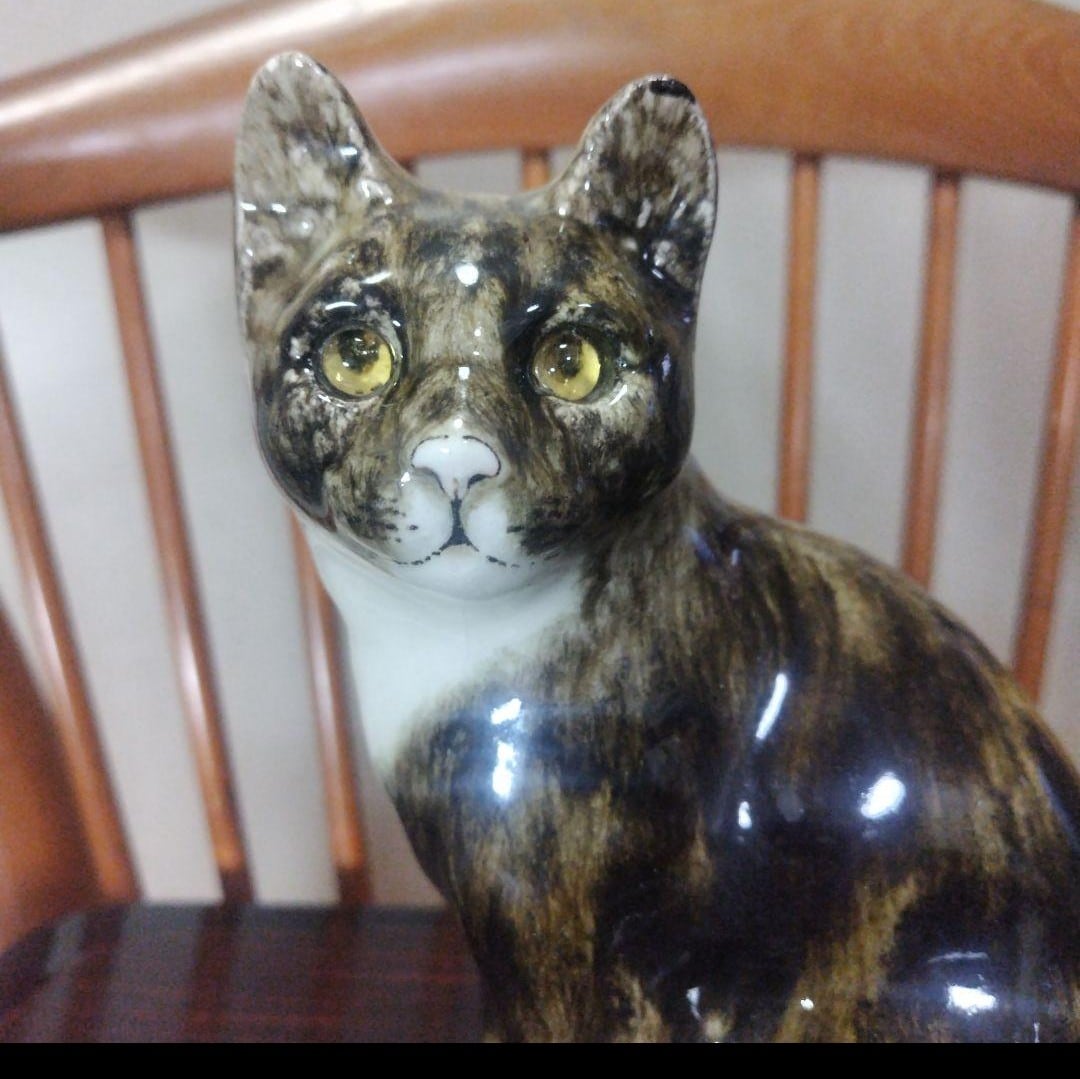 (ご参考)ウィンスタンレイ キャットの歴史〜ジェニーが猫を作り始めたのは、化学者でもある後の夫アレンの工房の助手に応募したのがきっかけでした。1950年代当初はケンジントン工房と呼ばれていましたが、ジェニーの創作したこの特徴ある猫を1958年から夫婦は作り始め、後にジェニーの旧姓のウィンスタンレイ工房と名乗るようになります。1964年に工房をノーフォークに移転し、アメリカやフランス、イタリアを中心に輸出がはじまります。80年代に入るとモデルが増えすぎてモデルナンバーで管理できなくなってきます。そこでだいたいのサイズごとに分類することにしました。90年代の全盛期には5人のスタッフを雇い第2工場も持っていました。ジェニーはすでに2004年に亡くなっていますが、今もなお工房は根強いファンに支えられています。