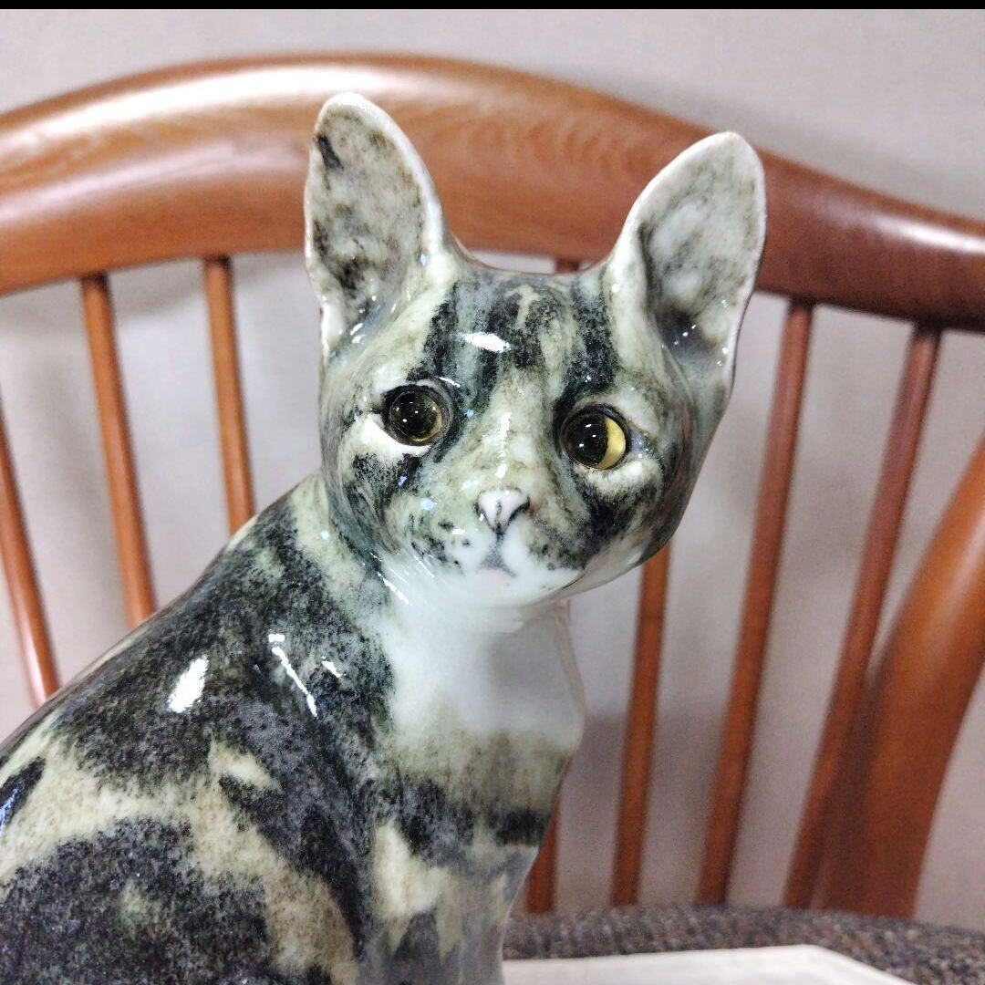 英国陶芸家のジェニー・ウィンスタンレイによるサイズ「4」のヴィンテージ作品で、まるで生きているような見返りタビーキャットです。